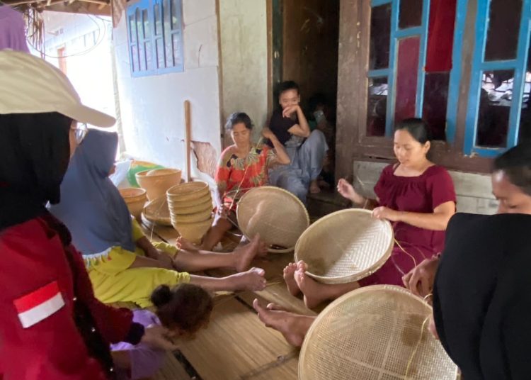 Mahasiswa KKM 61 Uniba sangat senang dan merasa terbayar tuntas ketika mencoba praktik langsung cara bagaimana mengayam dan menali tampi ini.