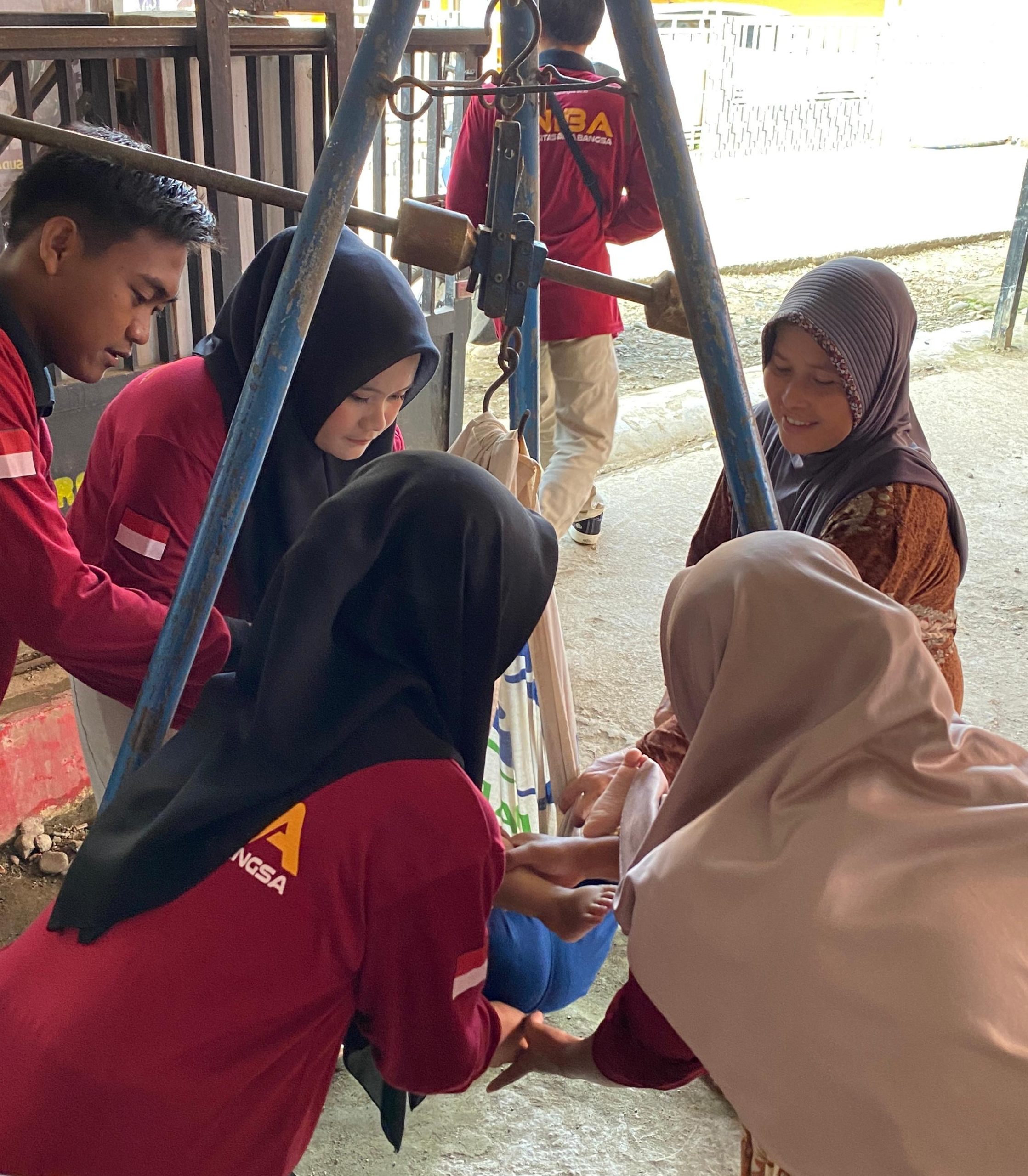 Mahasiswa KKM bekerja sama dengan kader Posyandu untuk menyukesekan kegiatan yang mencakup penimbangan balita, pengukuran tinggi badan, imunisasi, serta penyuluhan gizi.