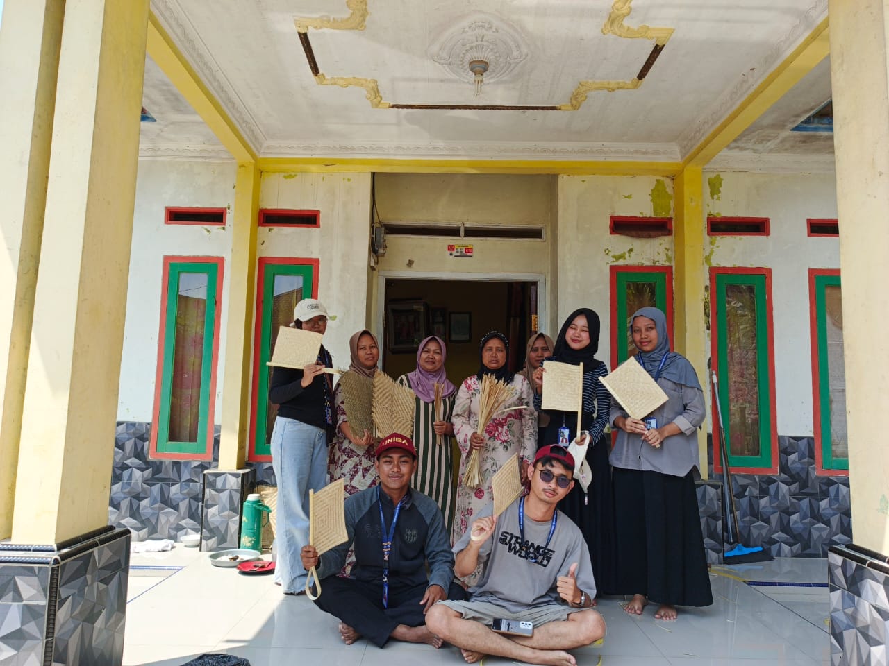 Kegiatan ini dilaksanakan di rumah salah satu pengrajin lokal, bapak muhron (45), yang telah menekuni kerajinan anyaman ini turun menurun dari yang sebelumnya. Ia mengajarkan mahasiswa secara langsung cara memilih bahan, teknik dasar menganyam, hingga tahap finishing dalam pembuatan kipas hihid. Mahasiswa terlihat antusias mengikuti setiap tahap proses pembuatan, meskipun baru pertama kali mencoba menganyam.