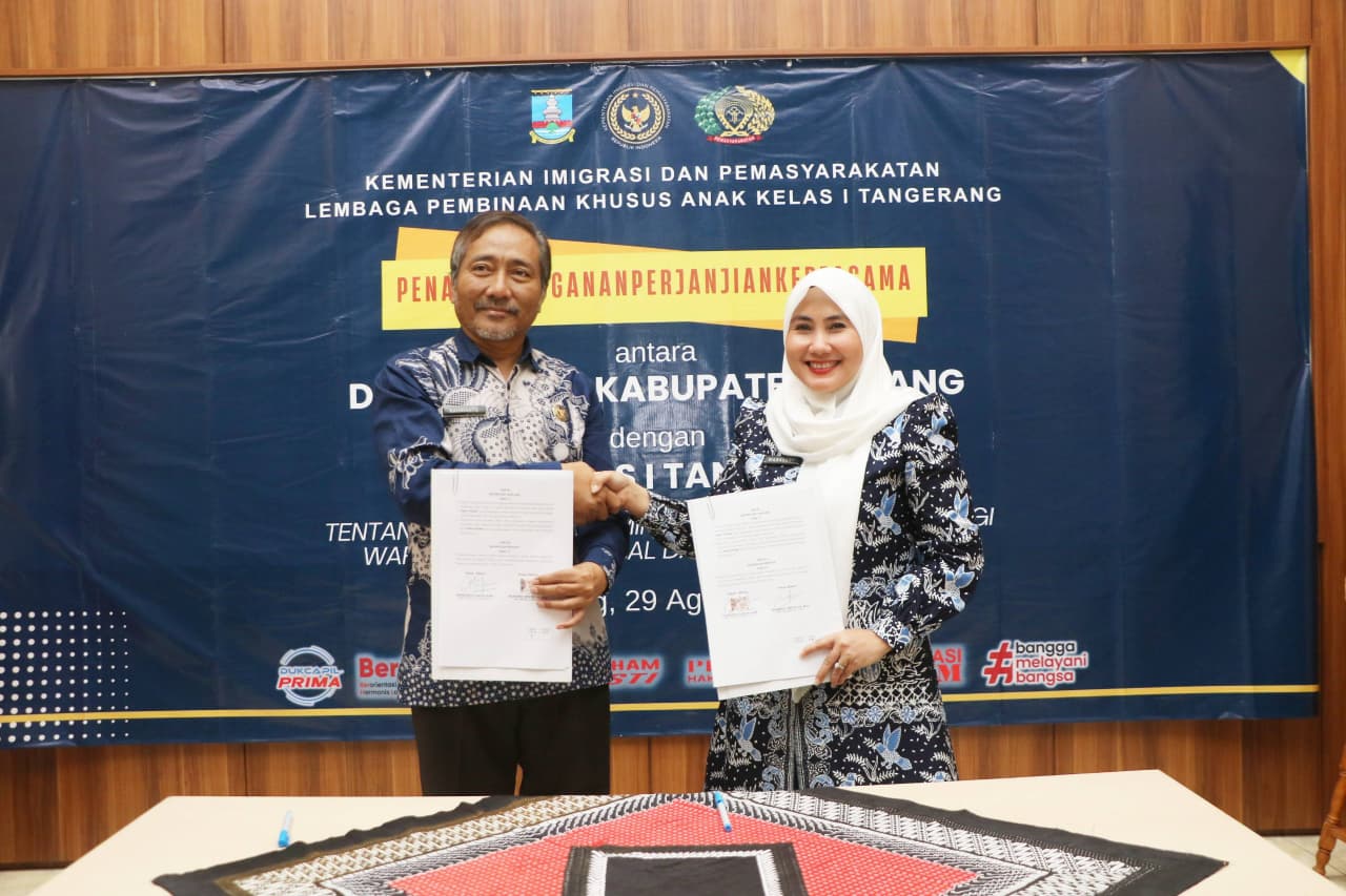 Penandatangan dilakukan oleh Kepala Disdukcapil Kabupaten Serang, Warnerry Poetri dan Kepala LPKA Kelas 1 Tangerang, Rahnianto di Aula LPKA Kota Tangerang pada Jum’at, 29 Agustus 2025.
