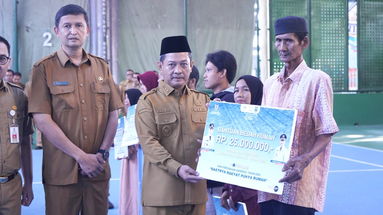 SERANG, RONABANTEN.ID – Wakil Bupati (Wabup) Serang Muhammad Najib Hamas menyerahkan secara simbolis bantuan 497 unit rumah tidak layak huni (RTLH) di Lapangan Tenis Indoor pada Senin, 1 September 2025.