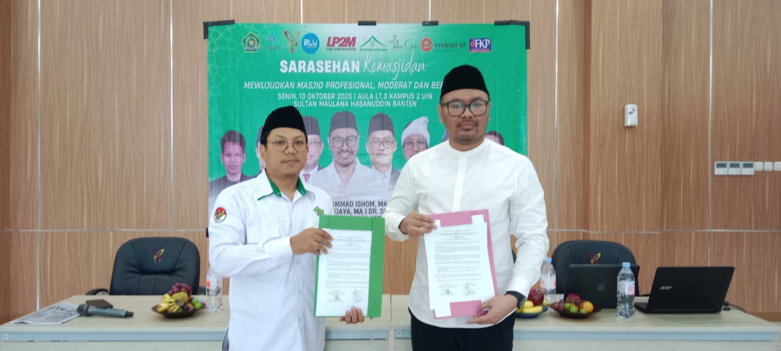 SERANG, RONABANTEN.CO.ID — Pusat Moderasi Beragama, Lembaga Penelitian dan Pengabdian kepada Masyarakat (LP2M) UIN Sultan Maulana Hasanuddin Banten, menyelenggarakan kegiatan Pelatihan Manajemen Masjid Profesional, Moderat, dan Berdaya pada Senin, 13 Oktober 2025, bertempat di Aula Rektorat Lantai 3 UIN SMH Banten.
