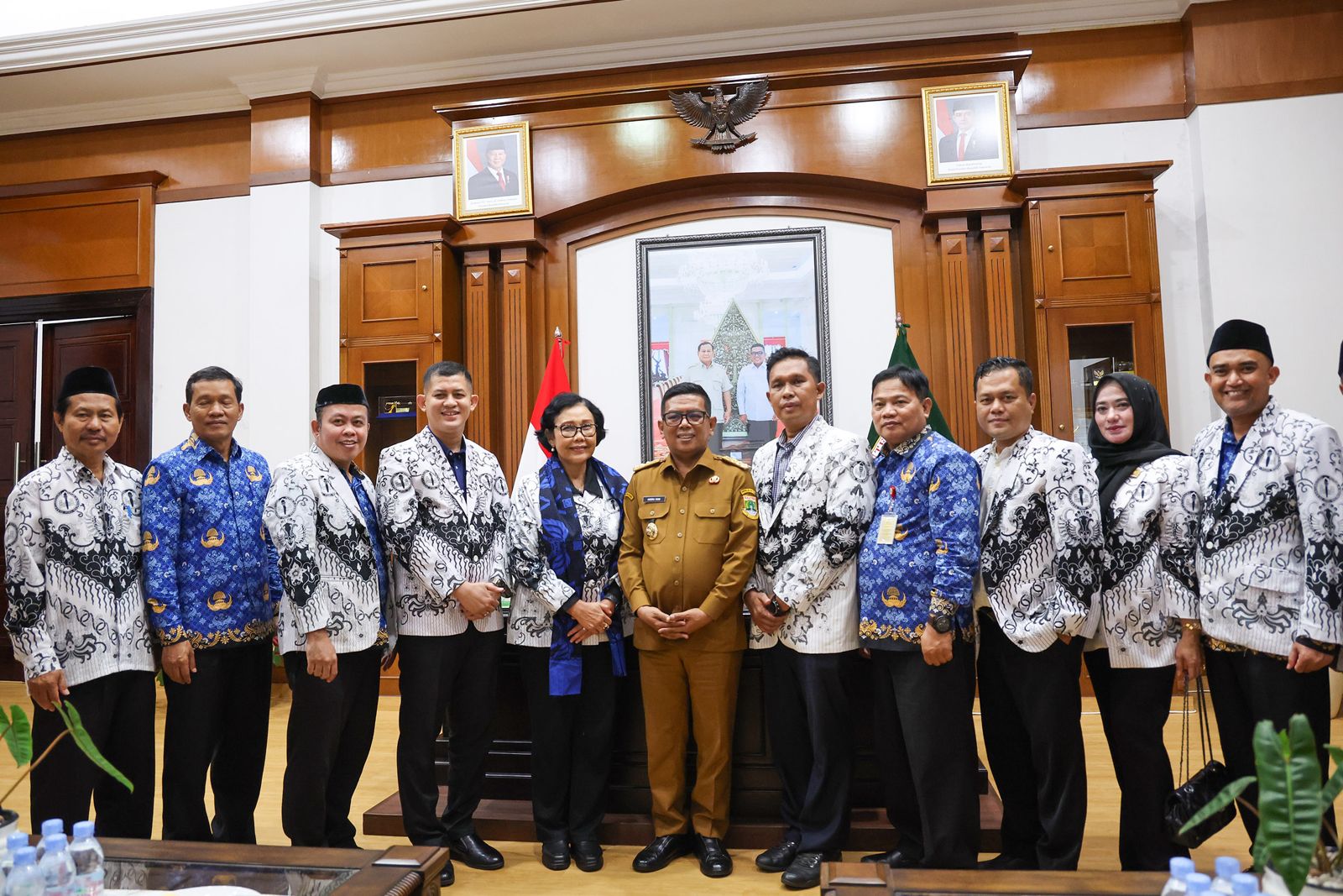 SERANG, RONABANTEN.ID – Gubernur Banten, Andra Soni, menerima kunjungan pengurus Persatuan Guru Republik Indonesia (PGRI) di Ruang Kerja Gubernur Banten, KP3B Curug, Kota Serang, pada Senin (17/11/2025). Dalam pertemuan tersebut, Gubernur memaparkan dampak signifikan dari program Sekolah Gratis yang telah diimplementasikan oleh Pemerintah Provinsi (Pemprov) Banten.