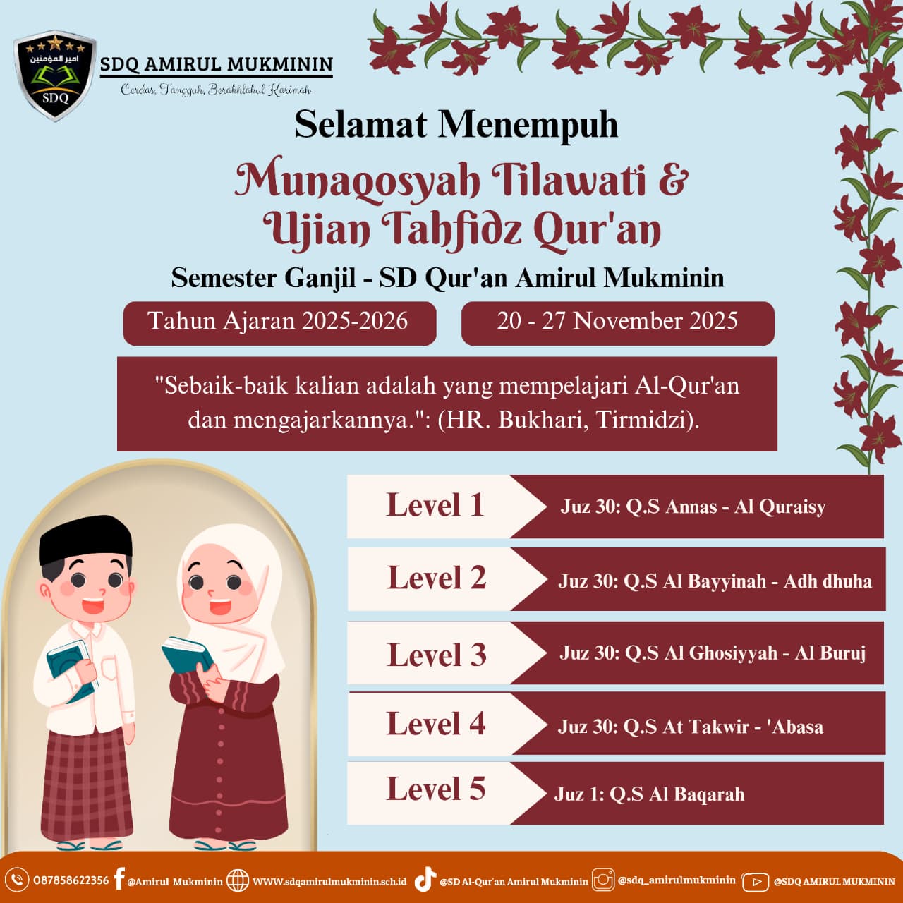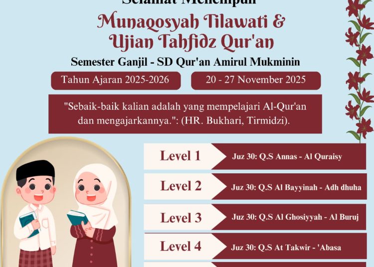 Anak-anak yang dicintai Allah di Sekolah Al-Qur’an Amirul Mukminin, kalian adalah cahaya-cahaya kecil yang sedang tumbuh di taman ilmu. Setiap kali kalian membuka mushaf, seolah langit ikut bersyukur melihat kalian belajar. Huruf-huruf itu seperti bintang lembut yang masuk ke hati kalian, membuatnya lebih terang dan lebih kuat.