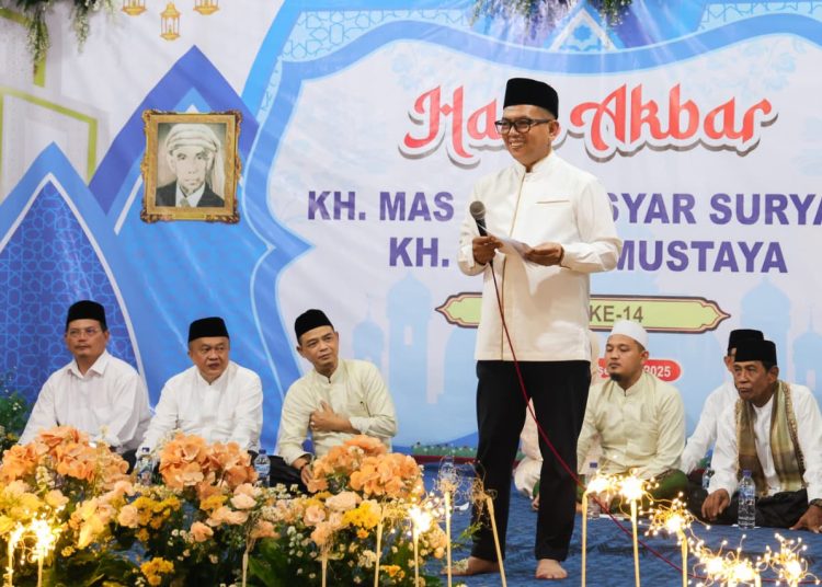 Dalam sambutannya, Andra Soni menegaskan bahwa peringatan haul tidak boleh sekadar dimaknai sebagai tradisi tahunan semata. Lebih dari itu, haul merupakan momentum krusial untuk meneladani kembali peran ulama dalam membimbing kehidupan bermasyarakat.