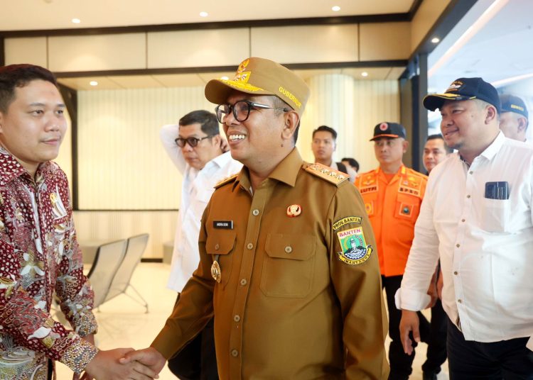 MERAK, RONABANTEN.ID – Gubernur Banten Andra Soni, mendampingi Menteri Koordinator Bidang Pembangunan Manusia dan Kebudayaan (Menko PMK) Pratikno serta Kepala Kepolisian Republik Indonesia (Kapolri) Jenderal Polisi Listyo Sigit Prabowo dalam peninjauan kesiapan pelayanan arus mudik dan balik Libur Natal 2025 dan Tahun Baru 2026 (Nataru) di Pelabuhan Merak, Kota Cilegon, Senin (22/12/2025).