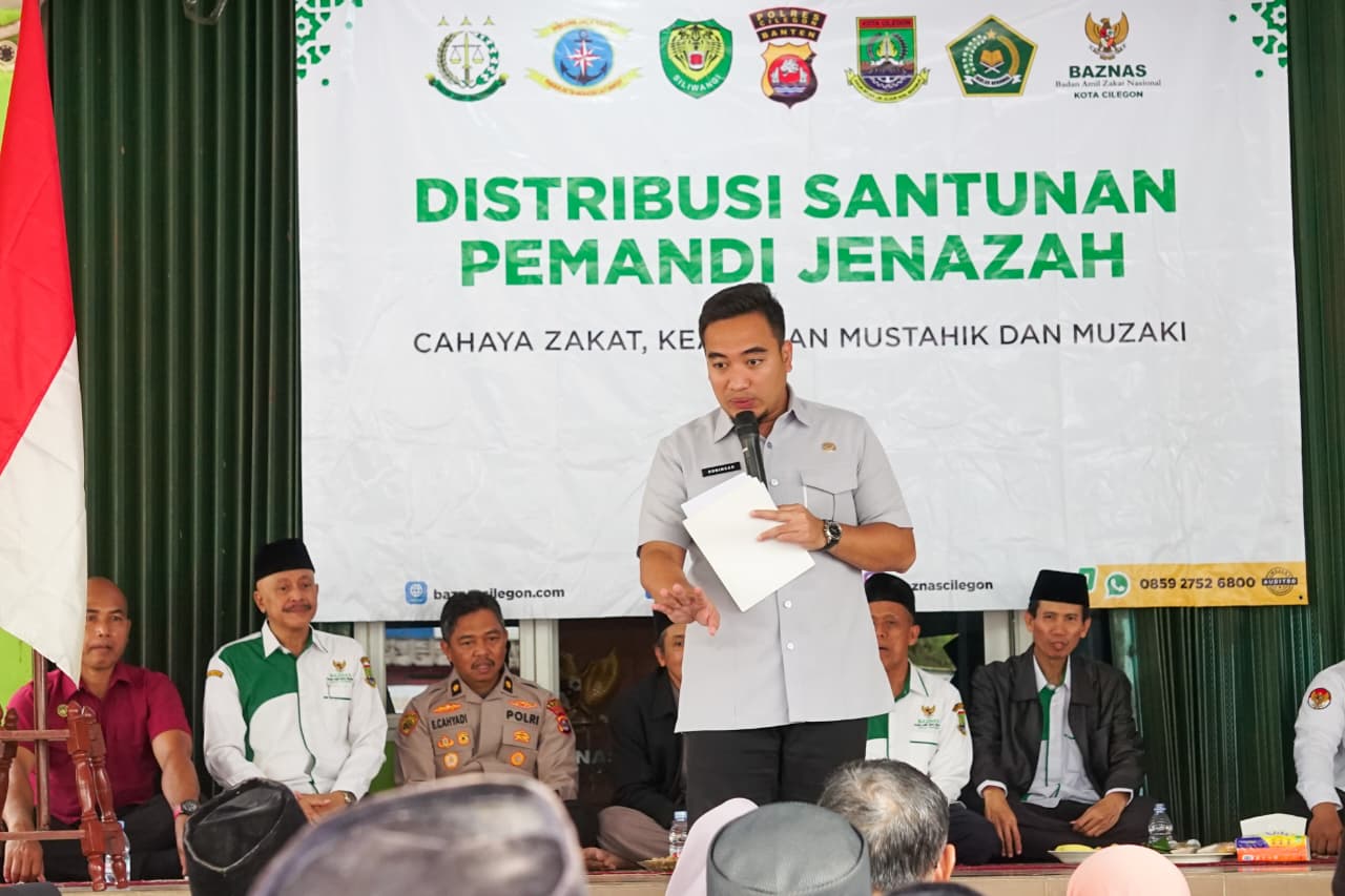 CILEGON, RONABANTEN.ID – Pemerintah Kota (Pemkot) Cilegon melalui Badan Amil Zakat Nasional (Baznas) Kota Cilegon mendistribusikan Santunan kepada pemandi jenazah. Pemberian santunan yang turut dihadiri Walikota Cilegon Robinsar ini berlangsung di Halaman Kantor Baznas Kota Cilegon, Selasa (23/12/2025).